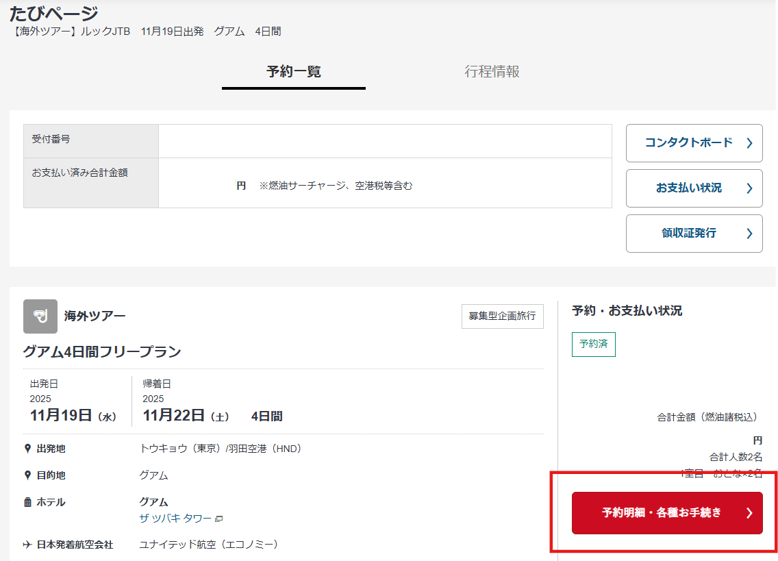 国、政府等の指示により、渡航先の入国管理に、事前にパスポート情報(国籍・旅券番号)を通知することが義務付けられております。ご予約後お早目に、「たびページ」より、入力いただけますようお願いいたします。