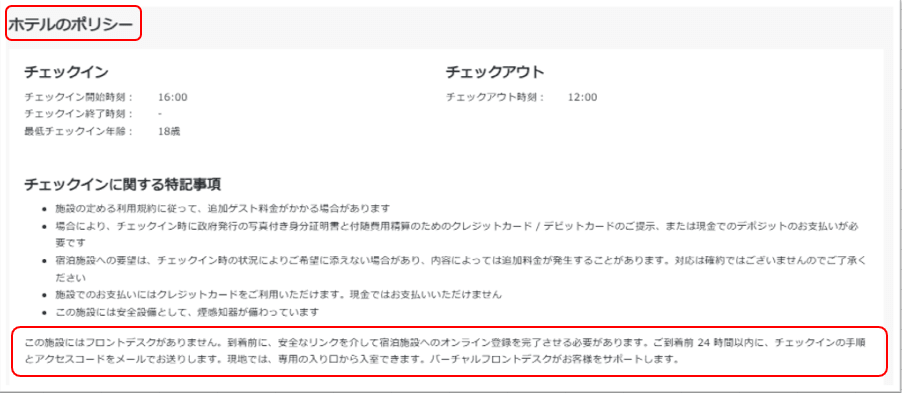 【1】フロントデスクがないホテルをご予約いただく場合のご注意