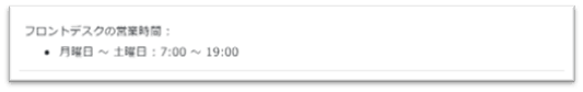 営業時間が決められているかをご確認される際は、ホテル詳細画面≫ホテルポリシー≫チェックイン関する特記事項 をご覧ください。